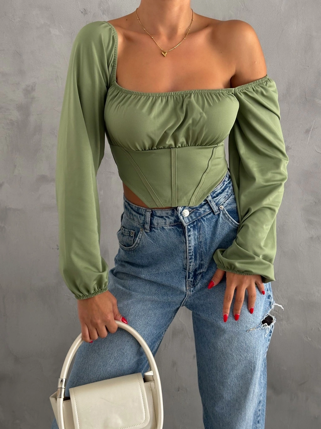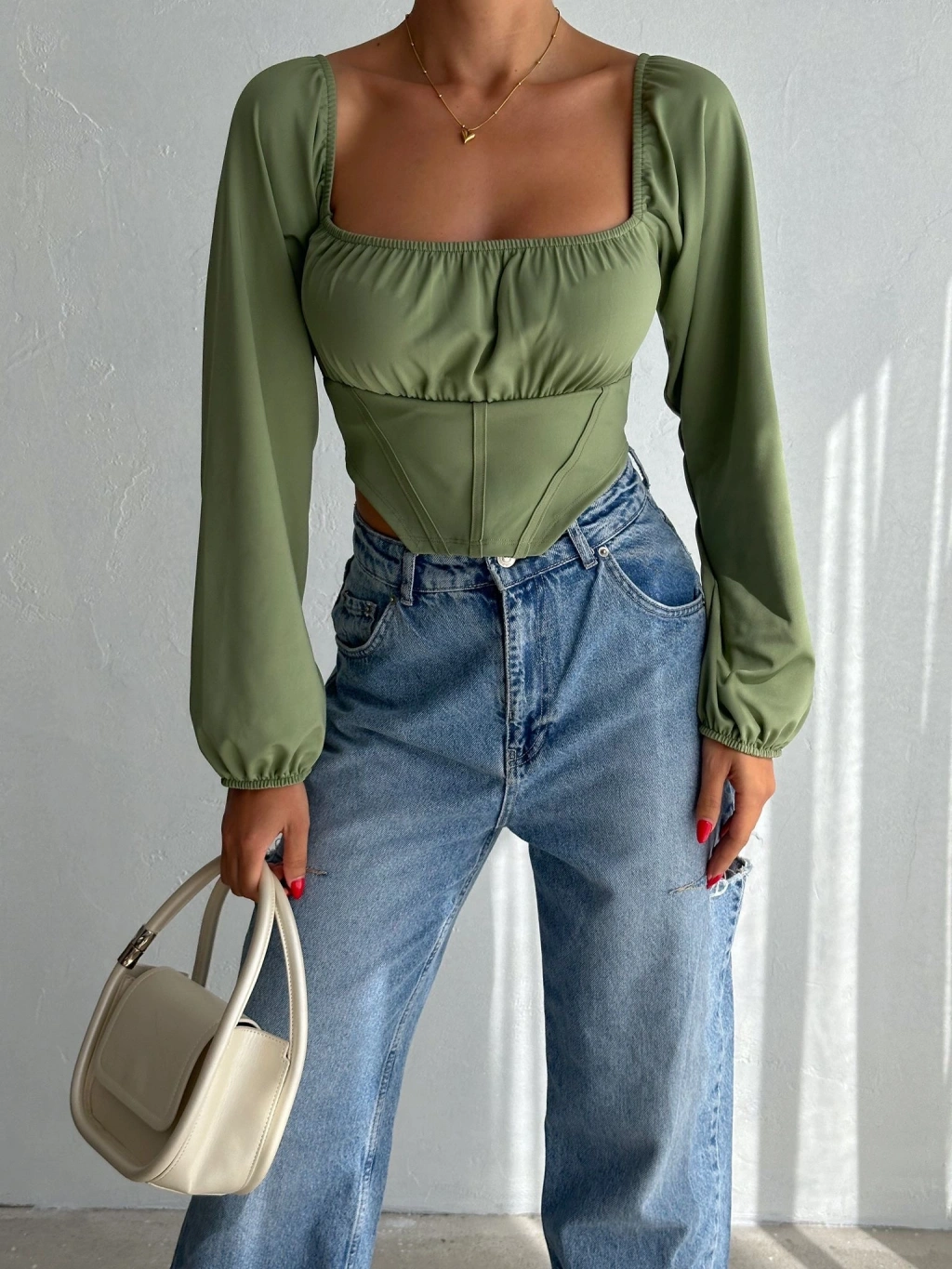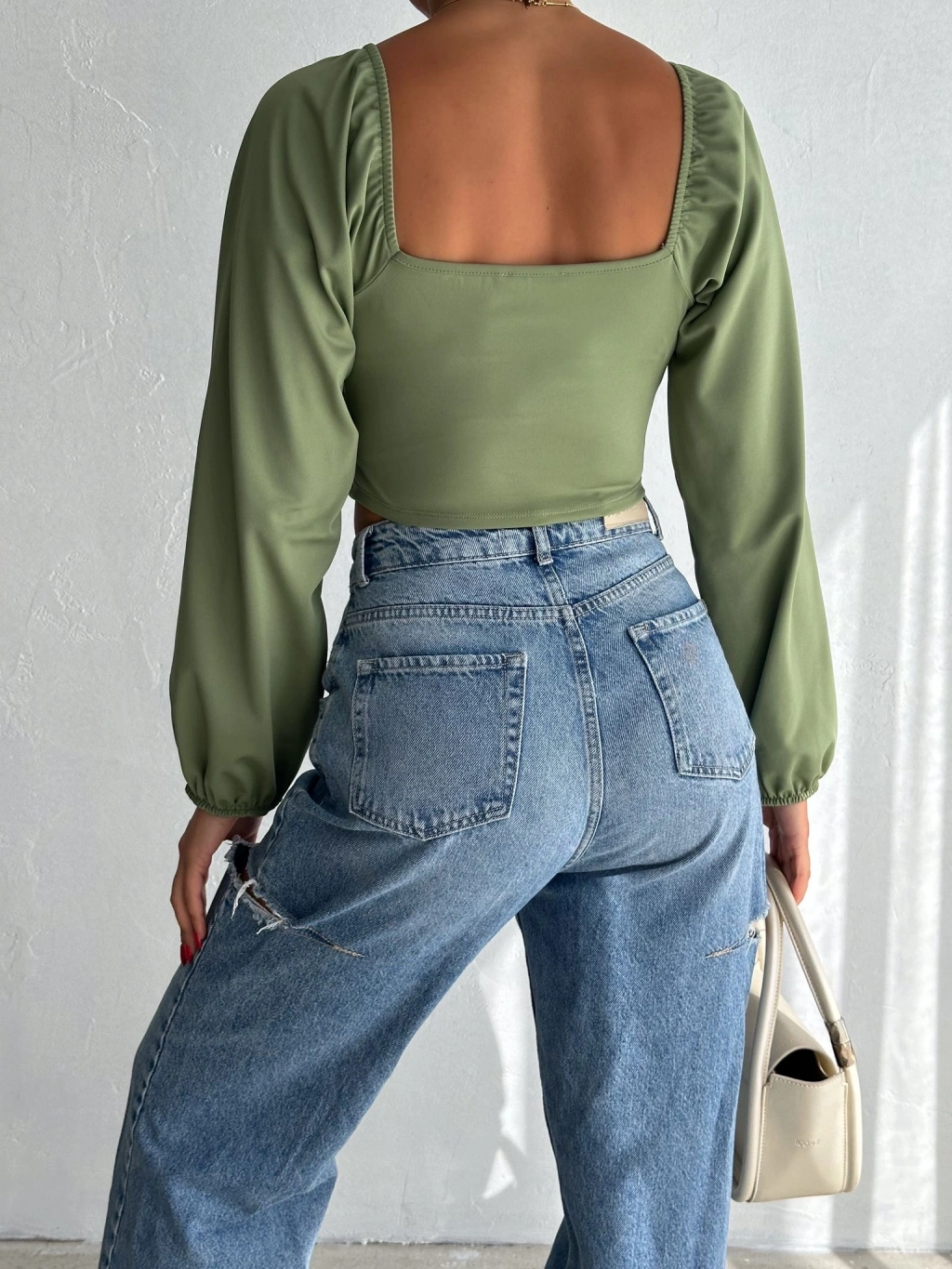 Altı çapraz büzgülü crop