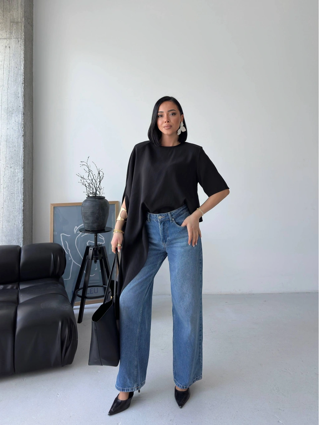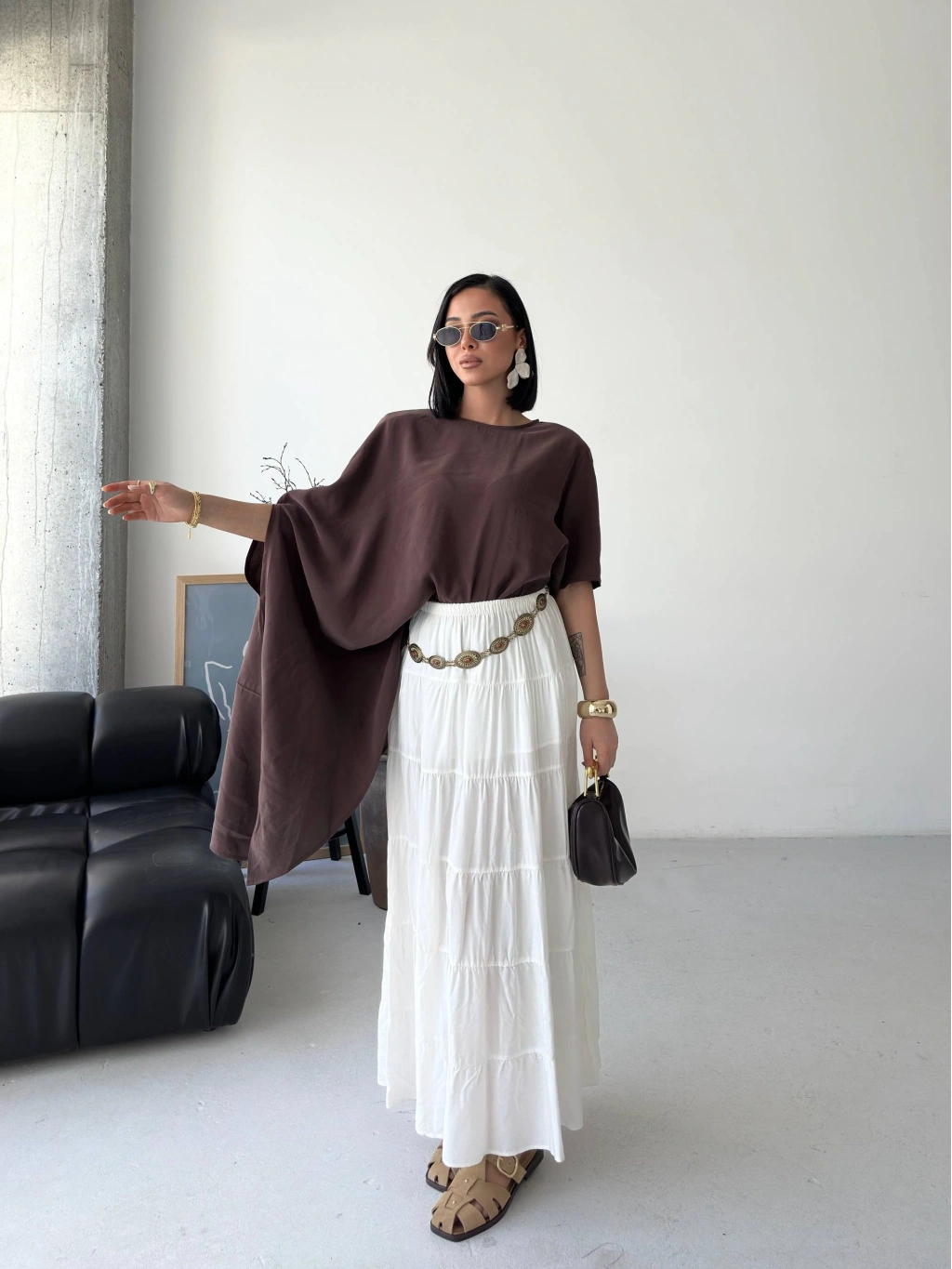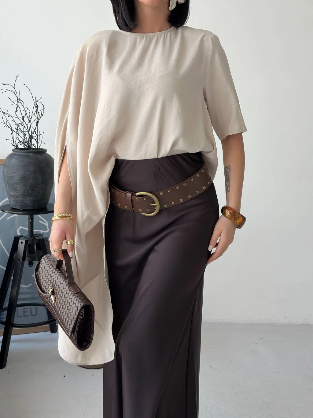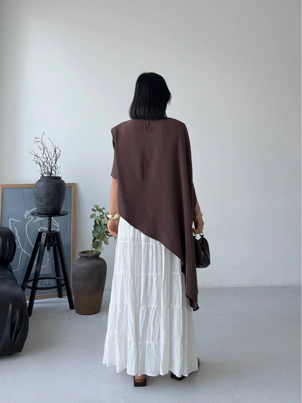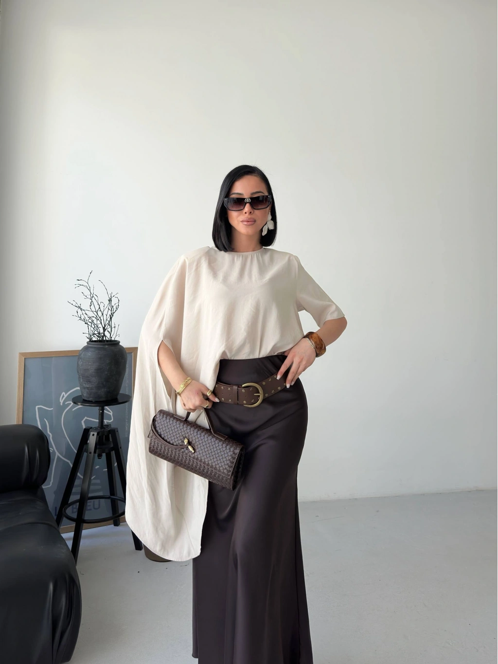 Minimal tasarımın güçlü bir yorumu olan bu asimetrik dökümlü salaş bluz, modern stil anlayışını ön plana çıkarır. Yumuşak dokusu ve akıcı kesimiyle gün boyu rahatlık sunarken, asimetrik formu sayesinde kombinlerine sofistike bir hava katar. İster günlük kombinlerinde ister daha özenli stil seçimlerinde rahatlıkla kullanabileceğin bu parça, sade şıklığın en etkileyici halini yansıtır.