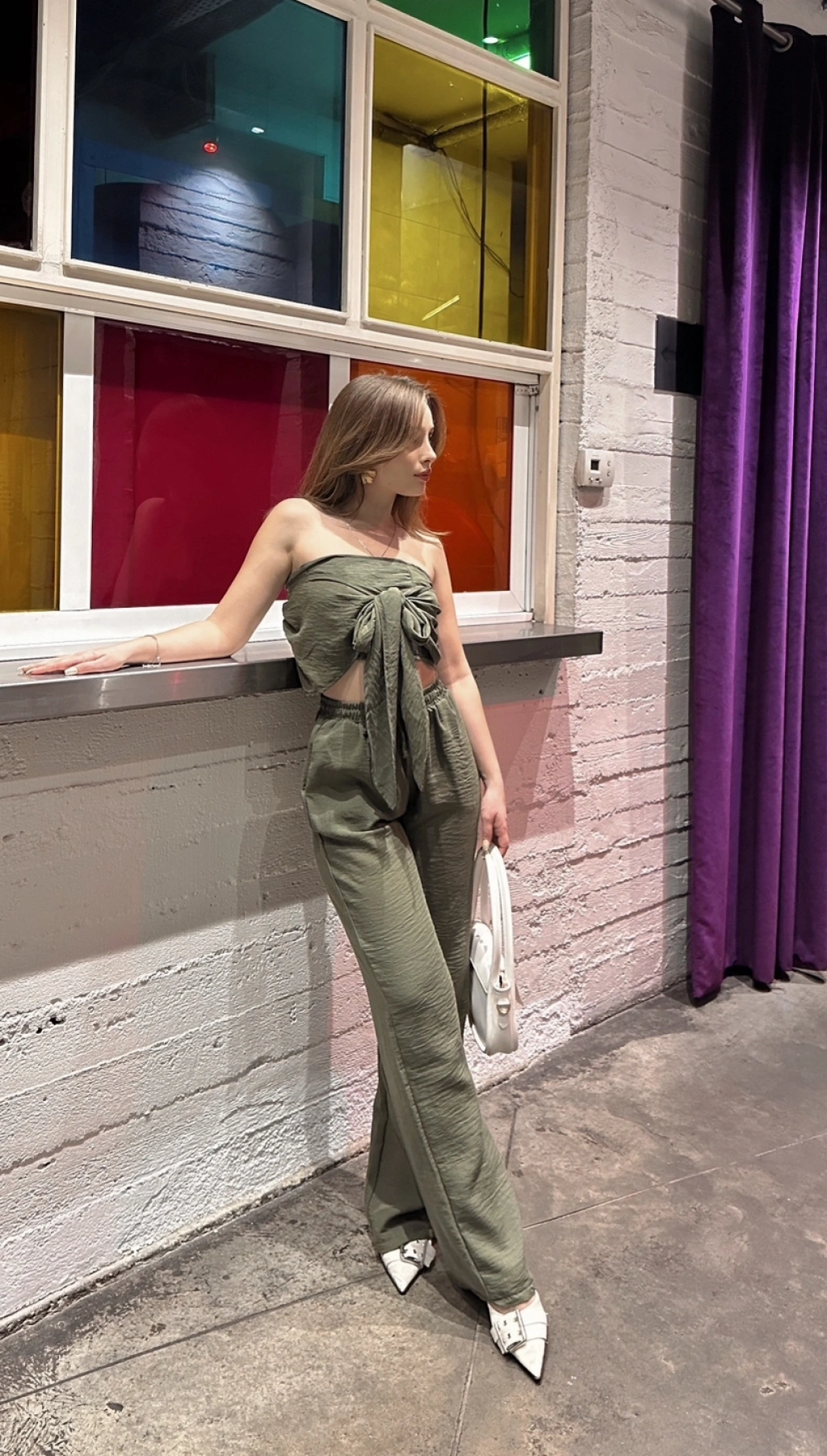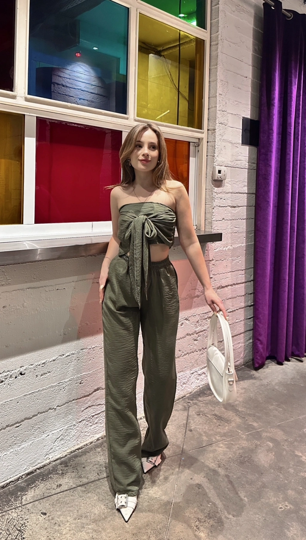 Straplez büzgülü bluz ve pantolonlu ikili takım