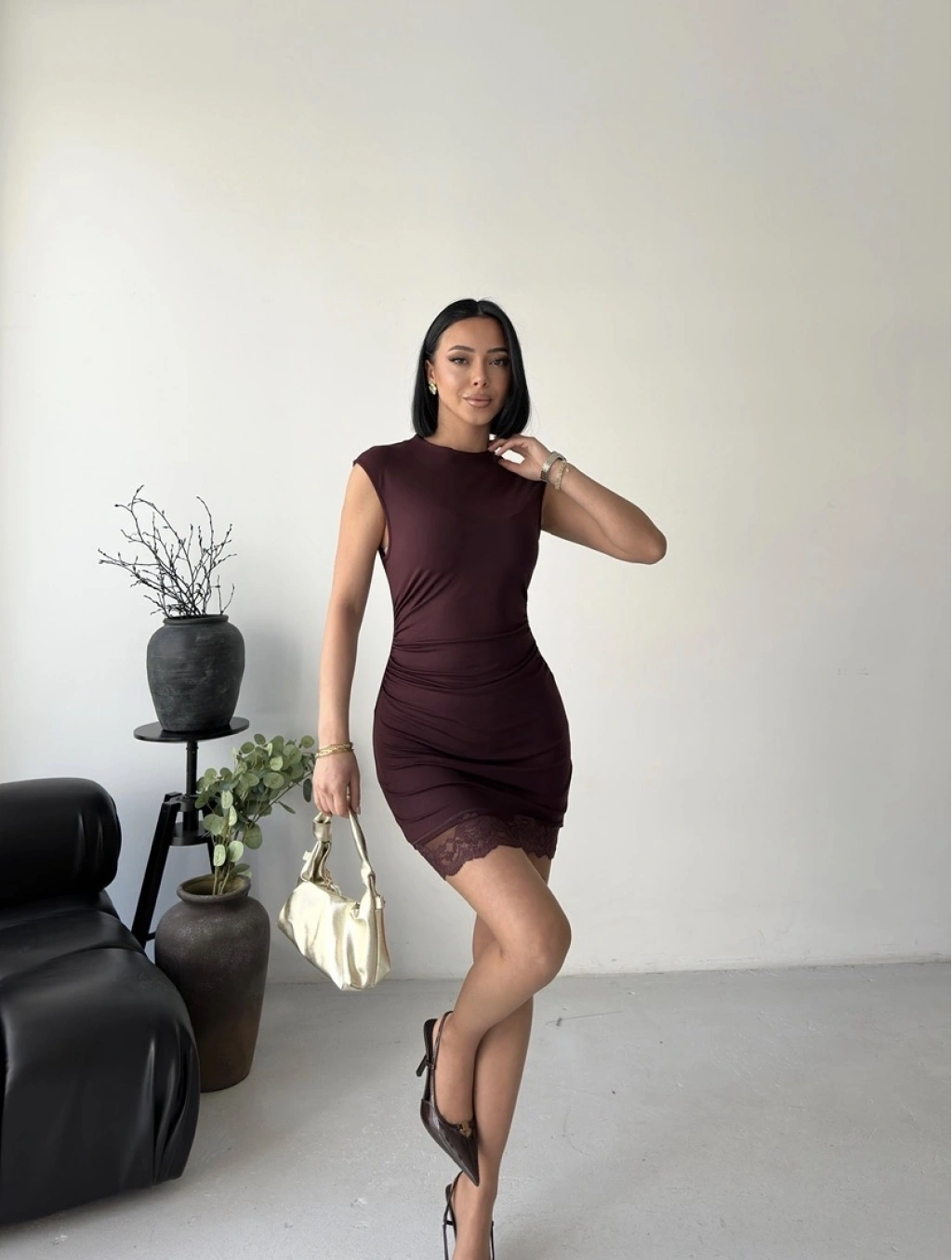 Dantel Detay Mini Elbise