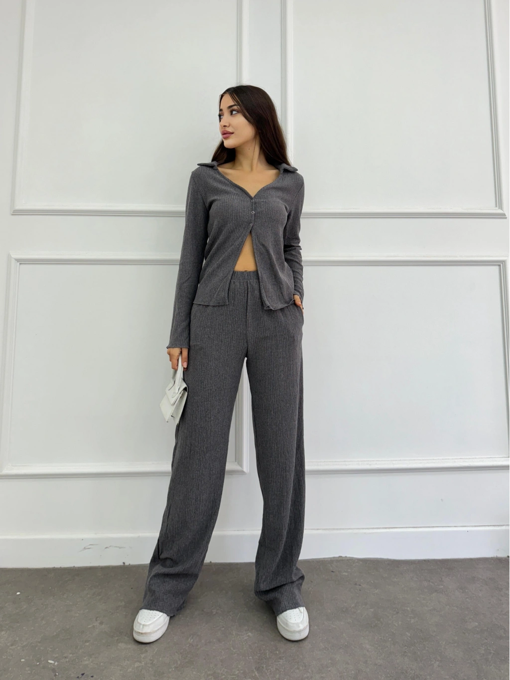 Düğmeli Bürümcük kumaş ikili takım