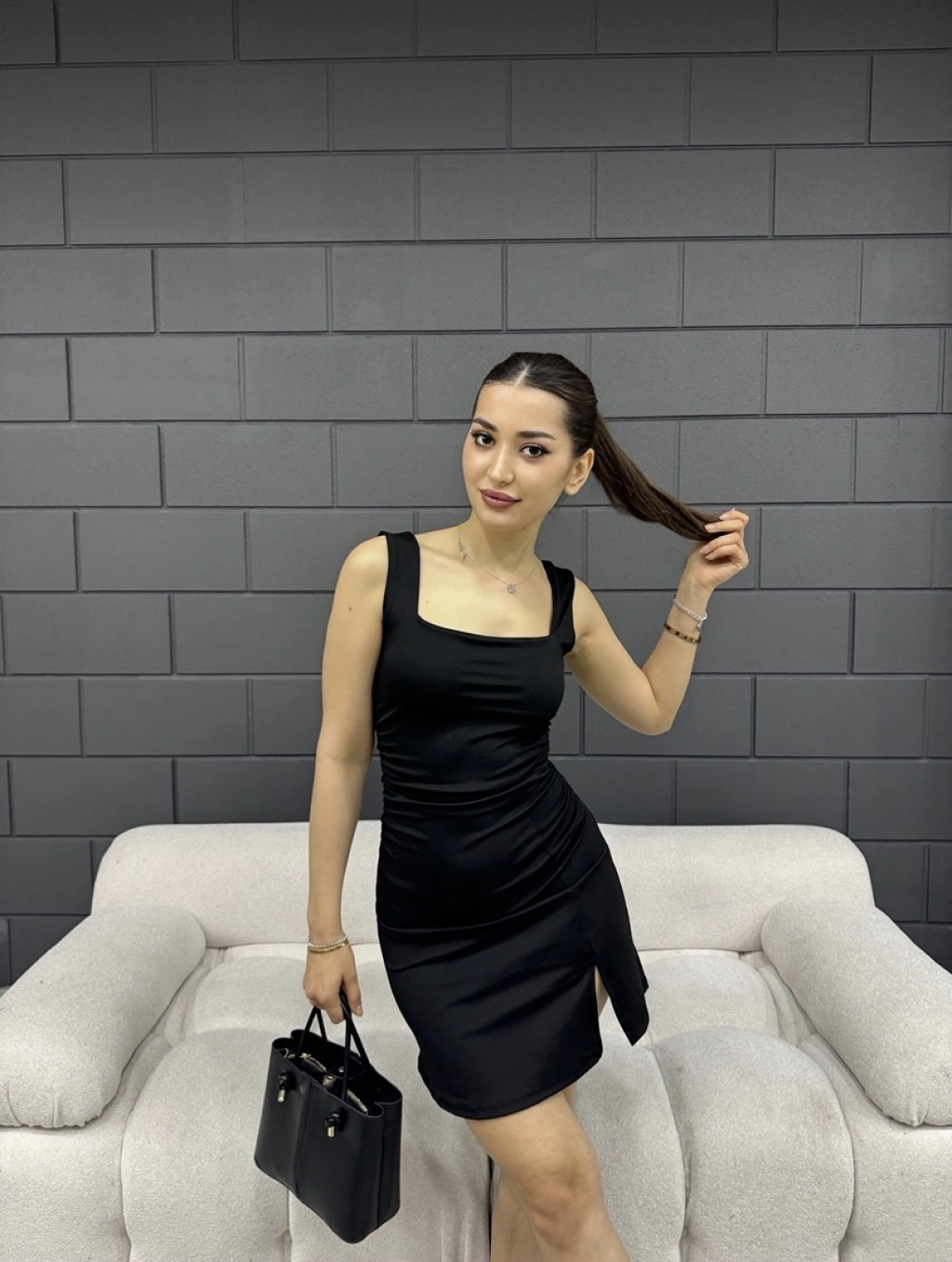 Straplez büzgülü bluz ve pantolonlu ikili takım