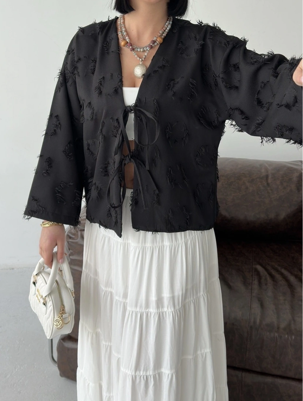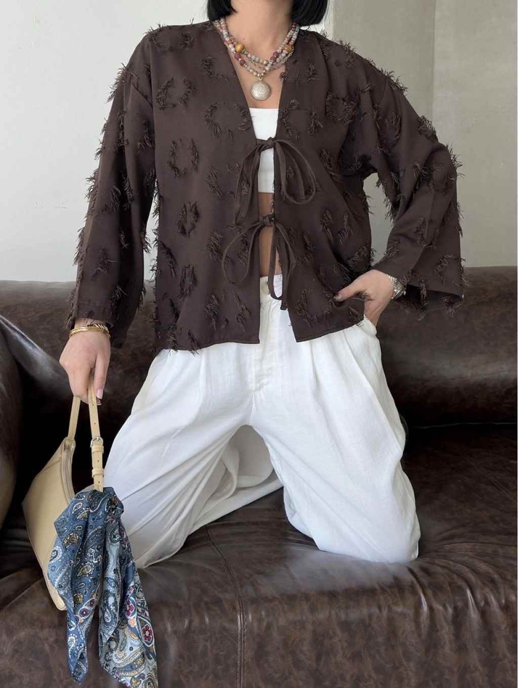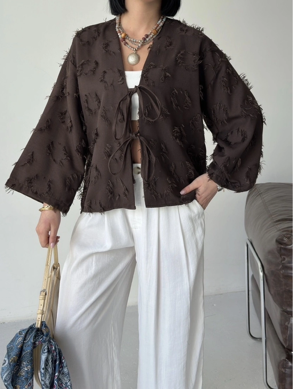 Keten Püskül Detaylı Kimono Ceket