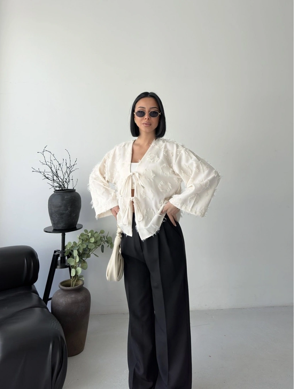 Kruvaze yaka aksesuar detay ikili takım