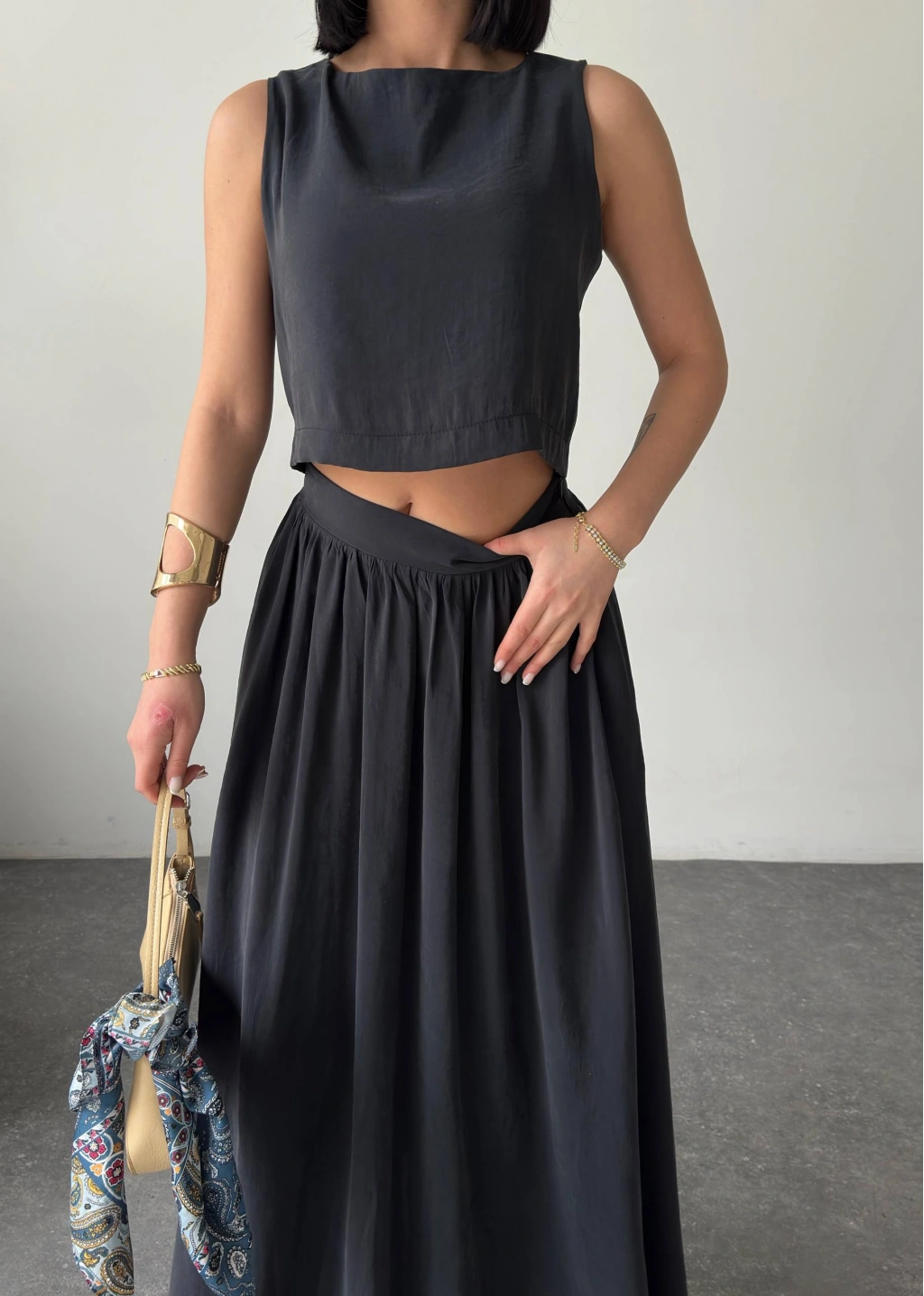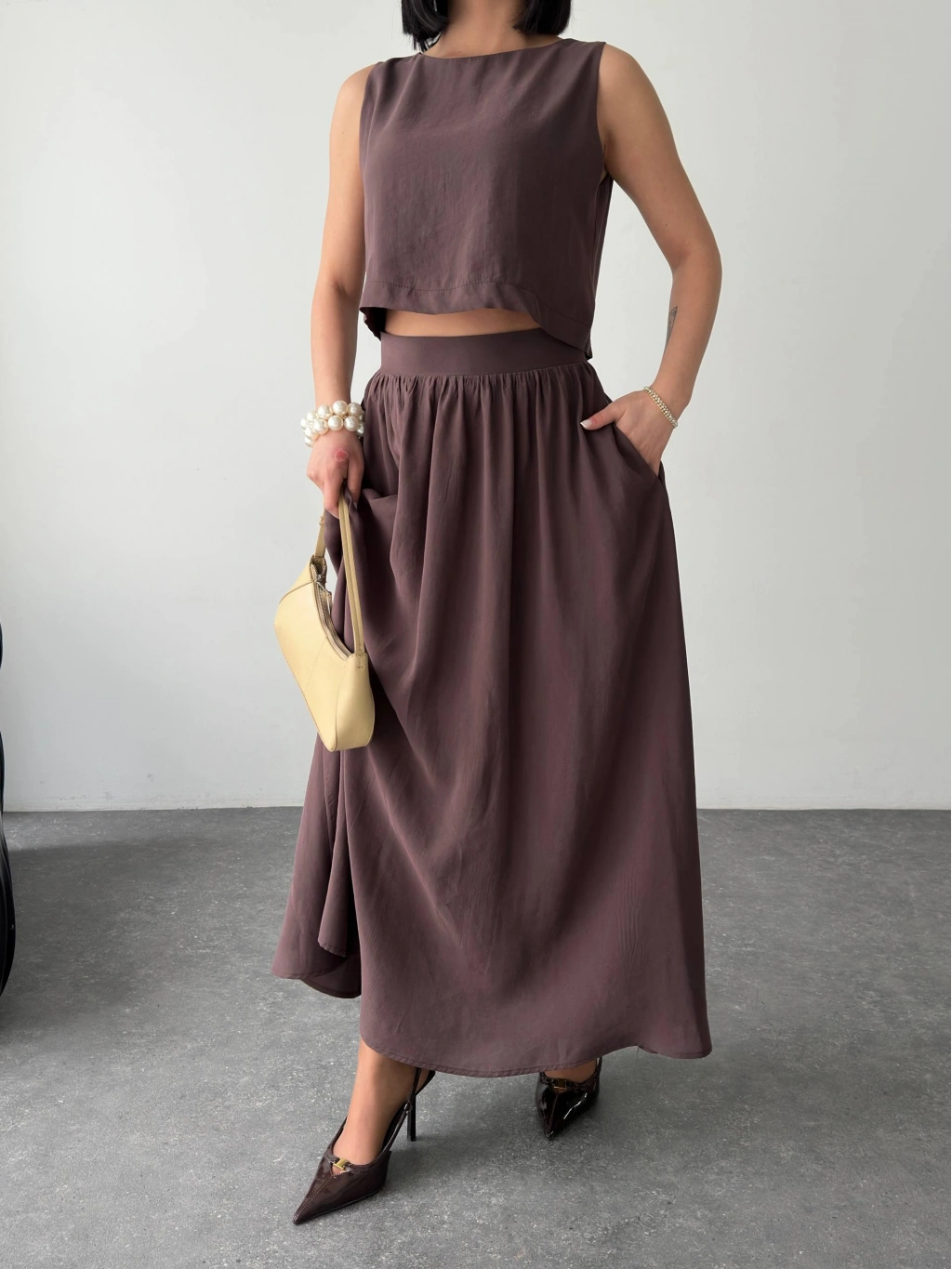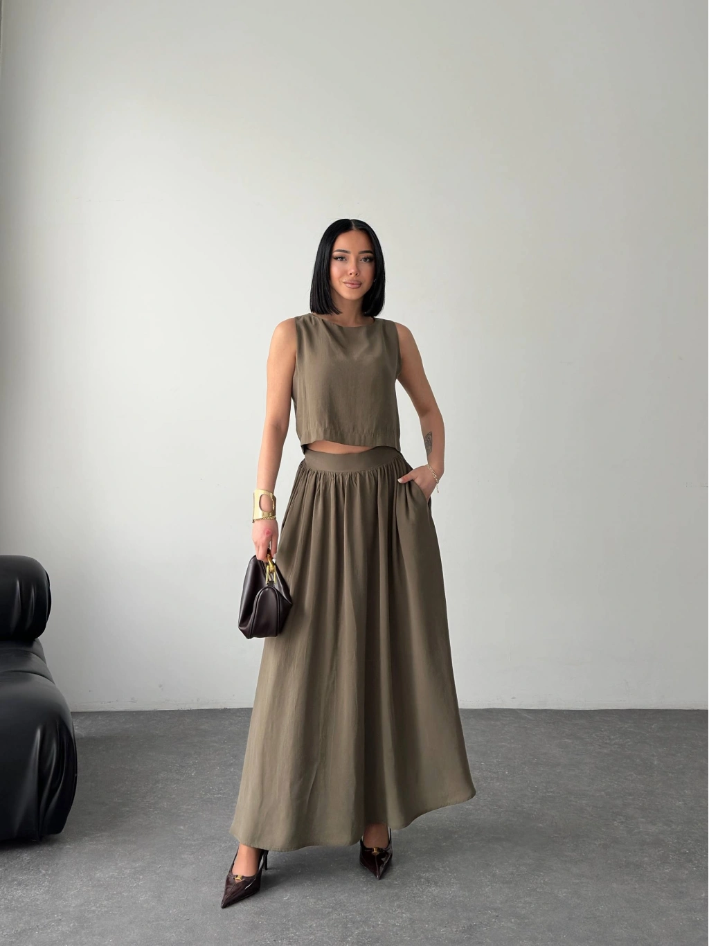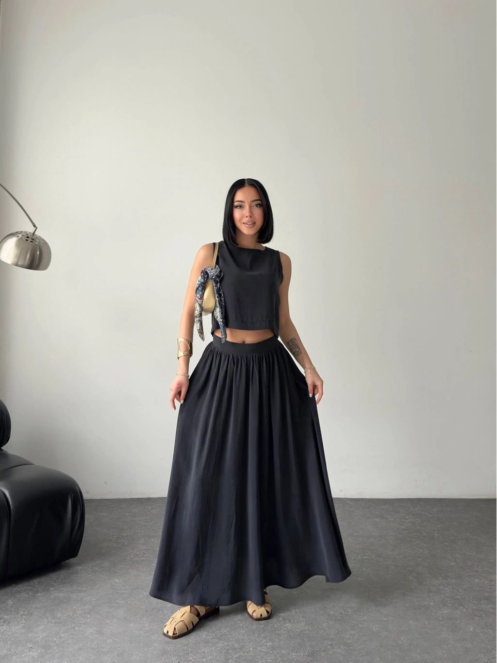 Günlük şıklıktan özel davetlere kadar geniş kullanım sunan bu ikili takım, sade ve güçlü bir stilin en zarif yansımasıdır. Hafif yapısı sayesinde gün boyu konfor sağlarken, kusursuz duruşuyla stilinizi bir adım öne taşır.