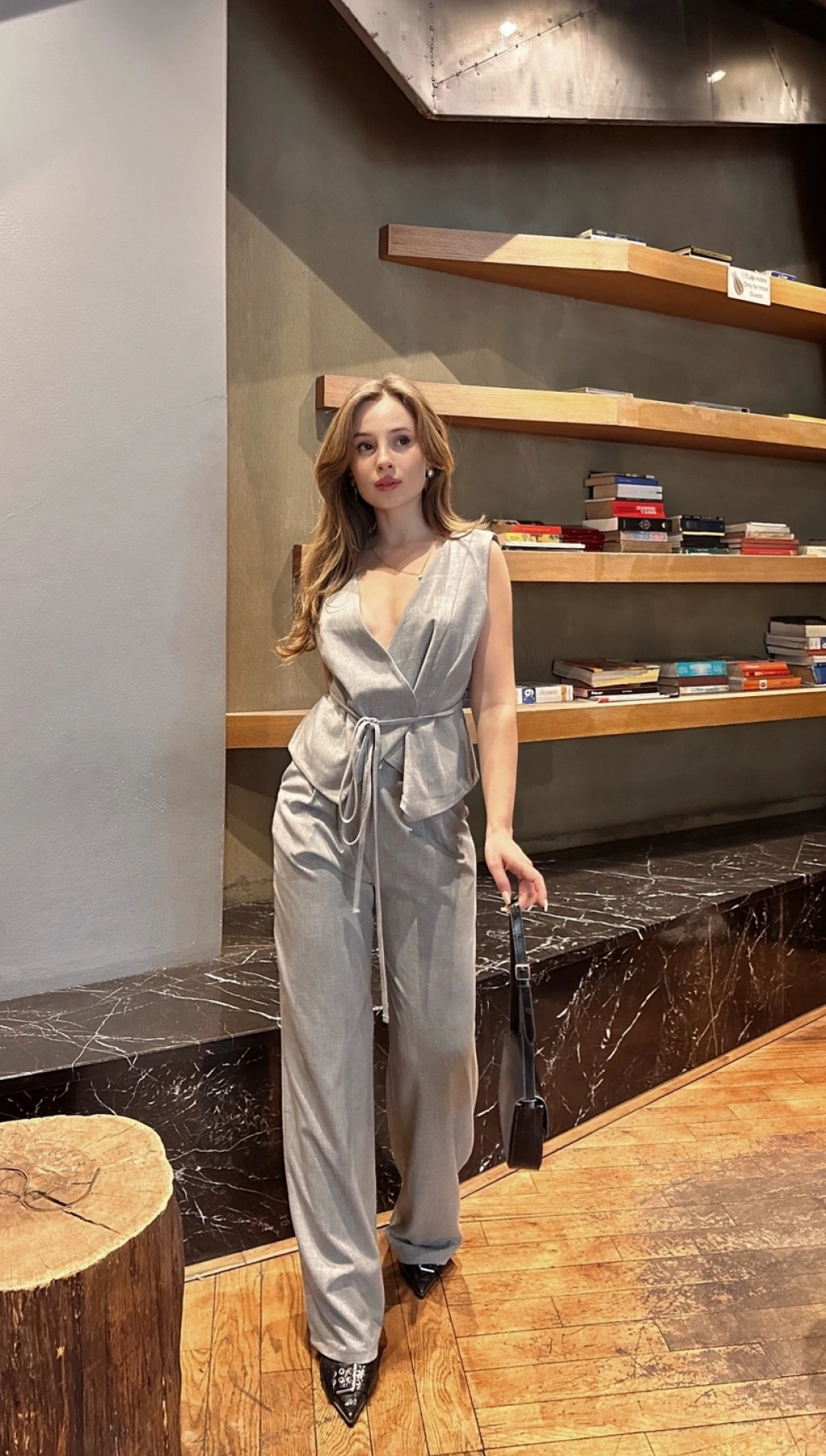 Degaje yaka sırt dekolte detay ikili takım