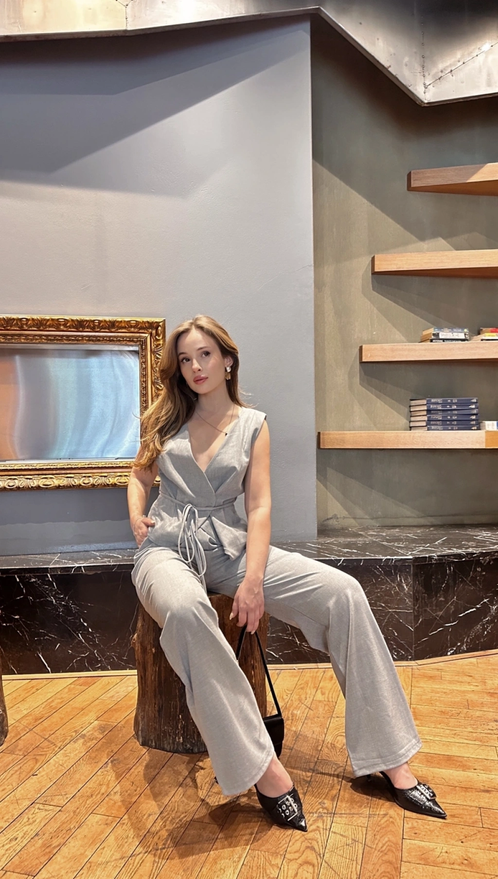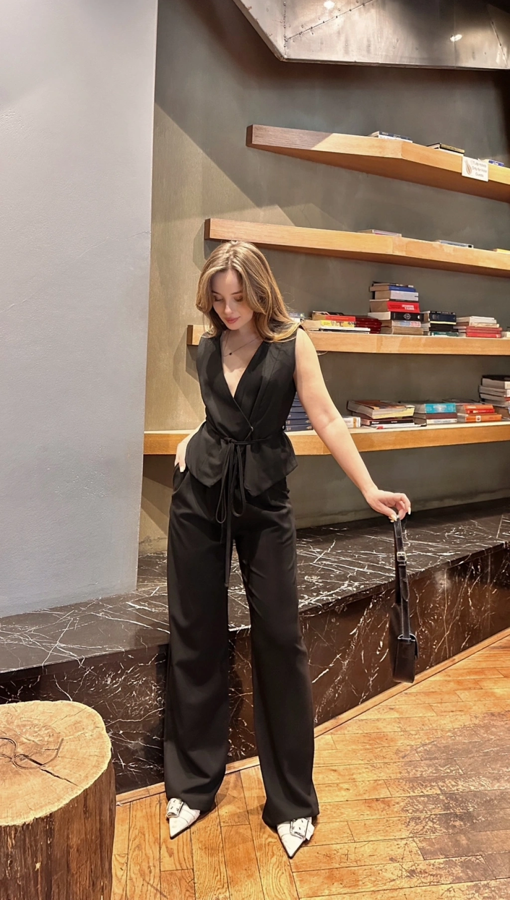 Sıfır kol Drapeli bluz ve pantolonlu ikili takım