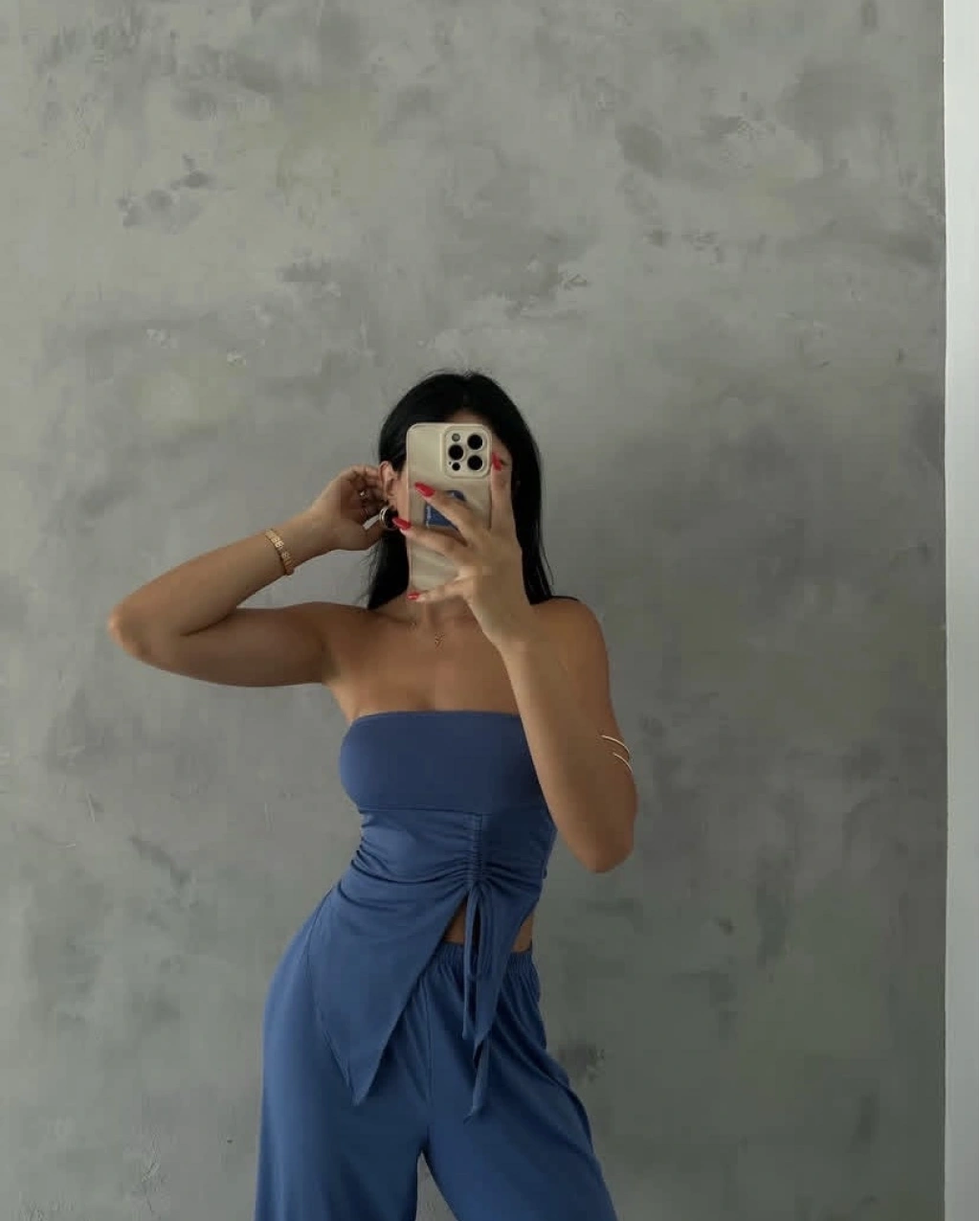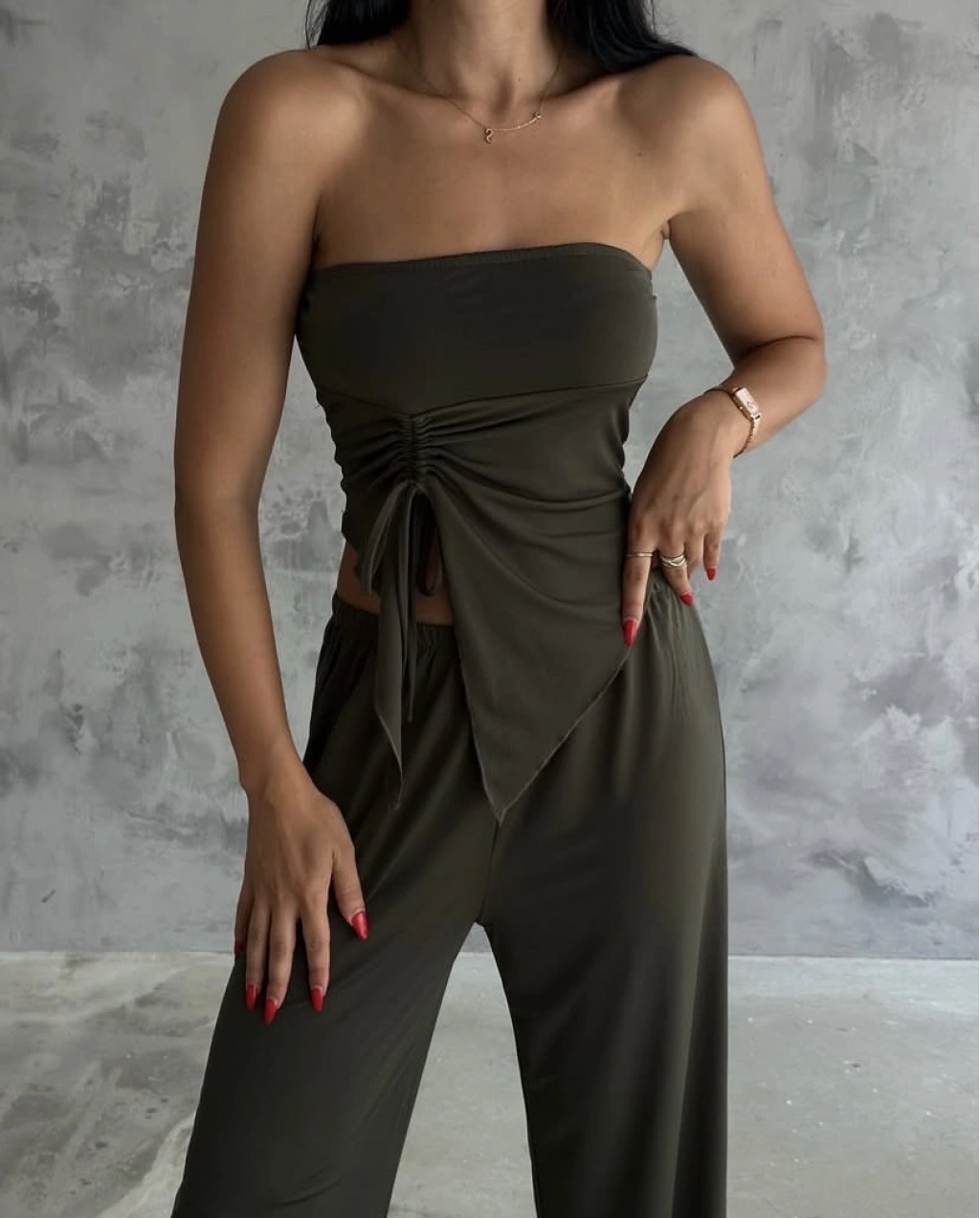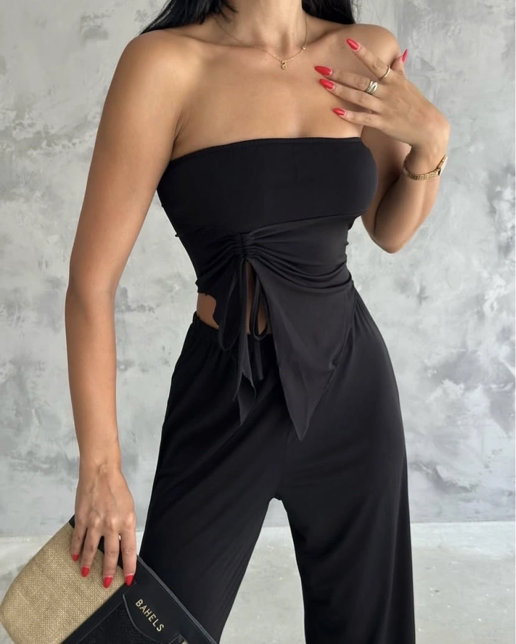 Straplez büzgülü ikili takım