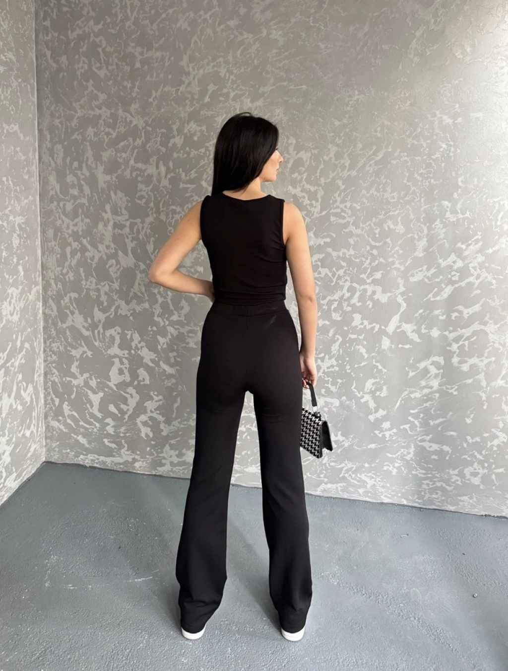 Gofre bluz ve pantolonlu ikili takım