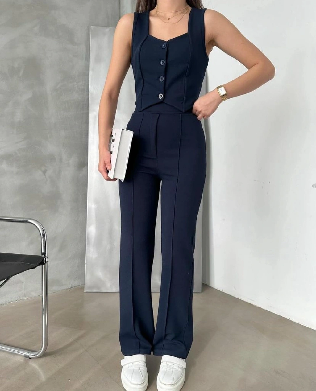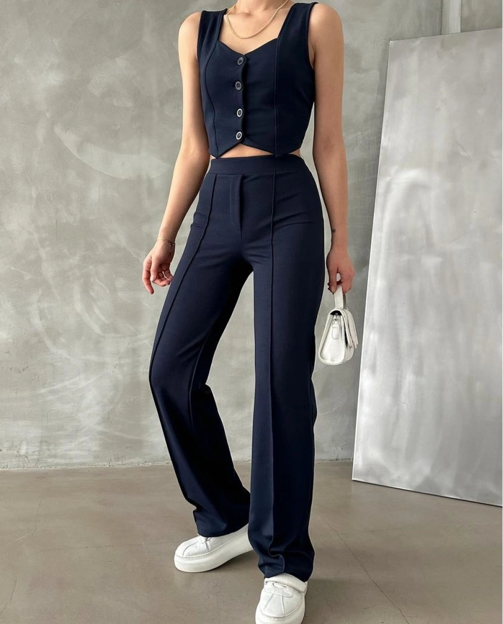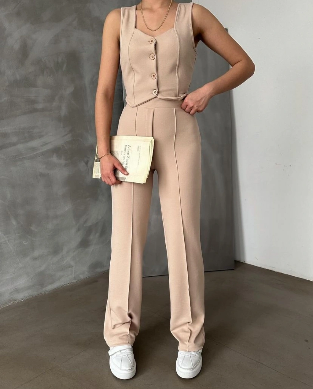 Yelek ve pantolonlu ikili takım 4 Renk seçeneği