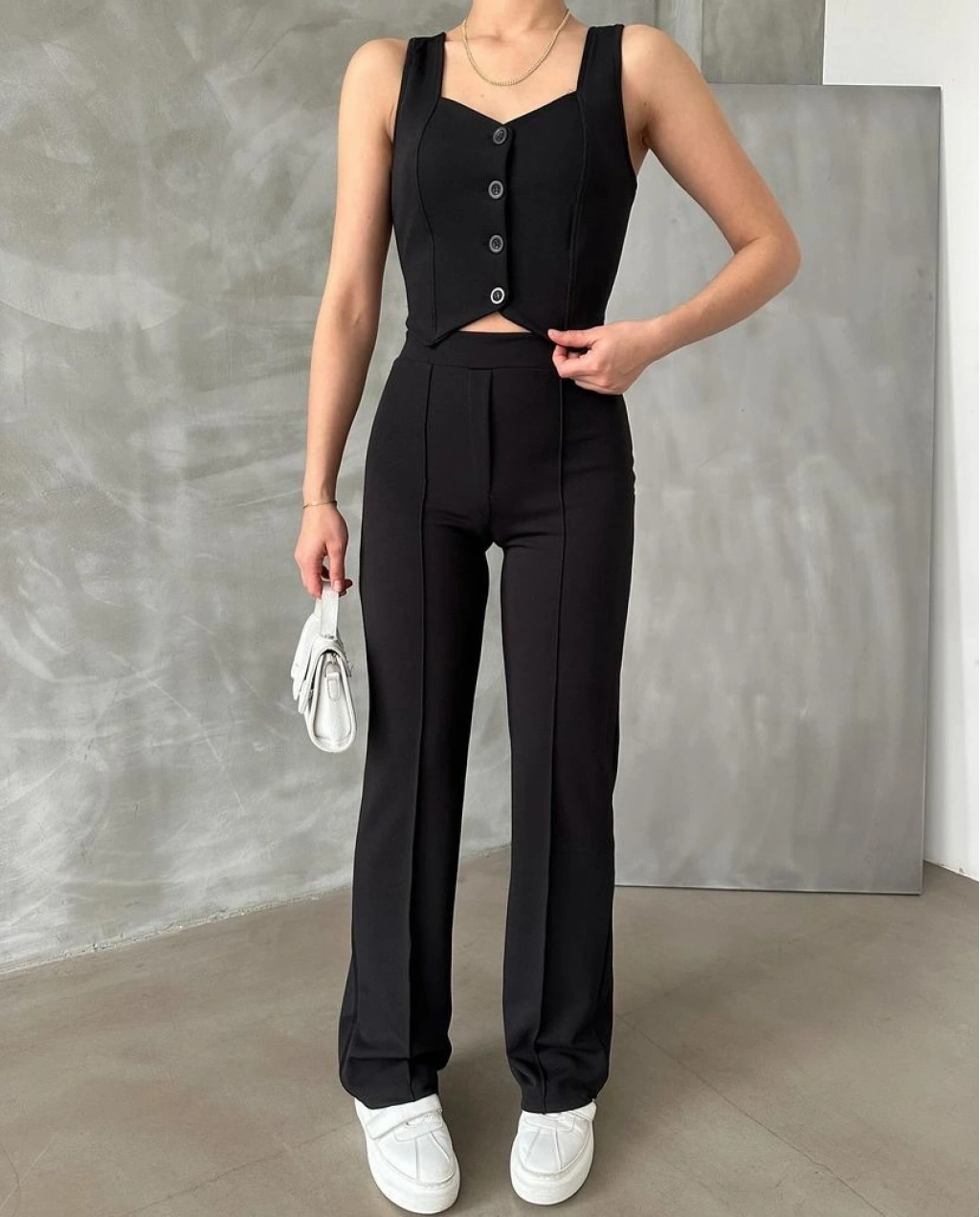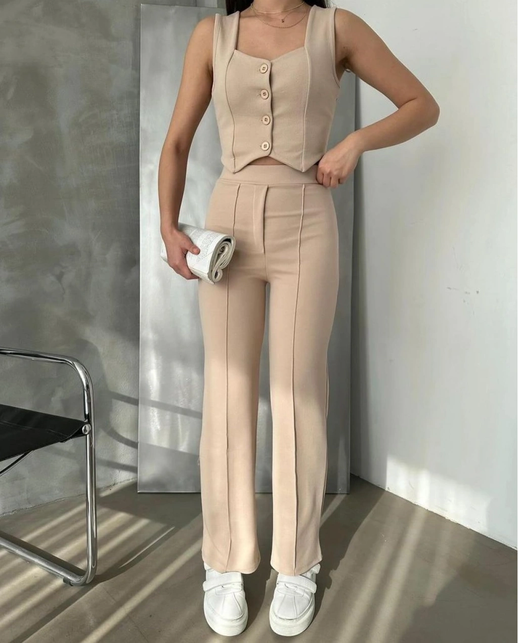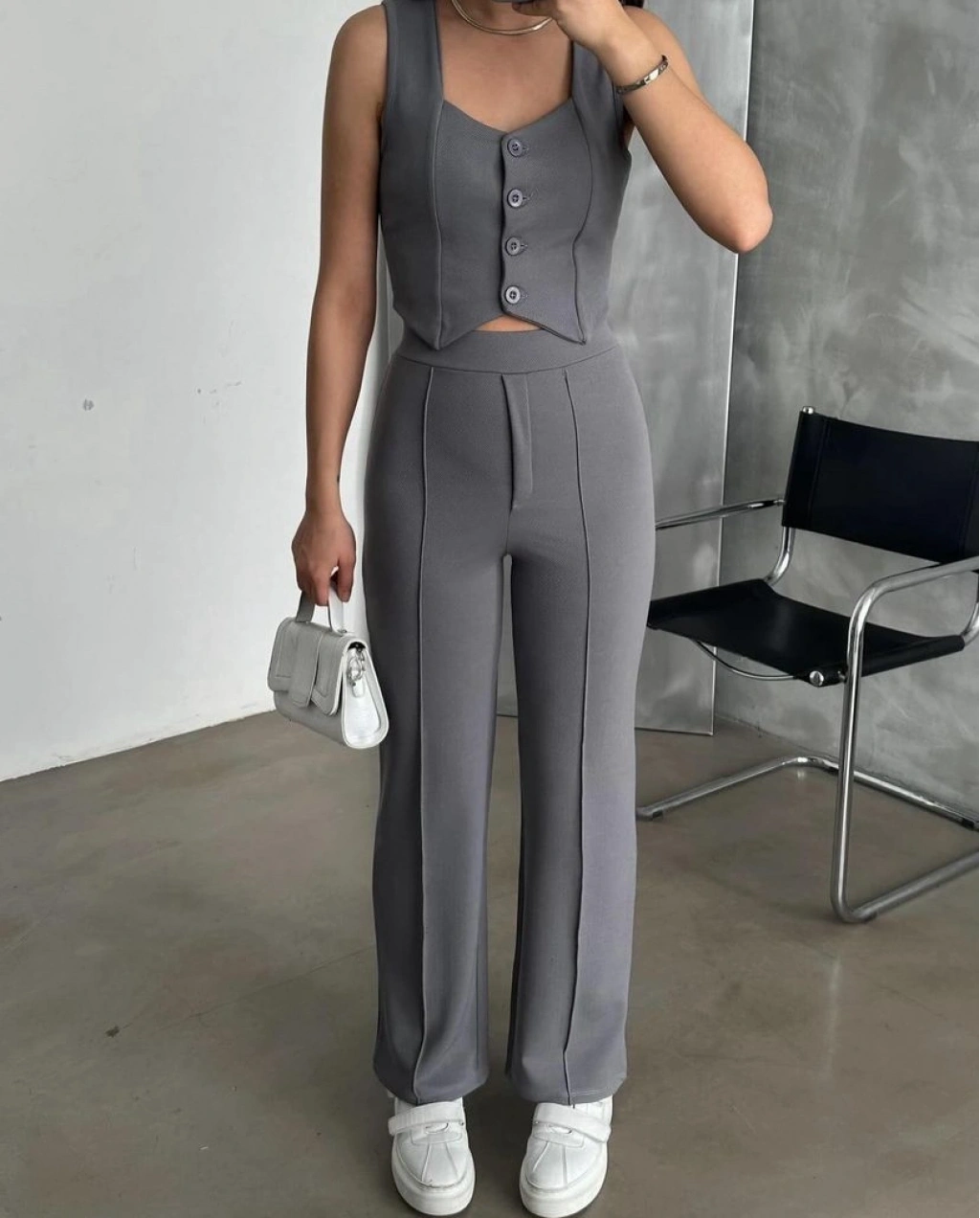 Yelek ve pantolonlu ikili takım 4 Renk seçeneği